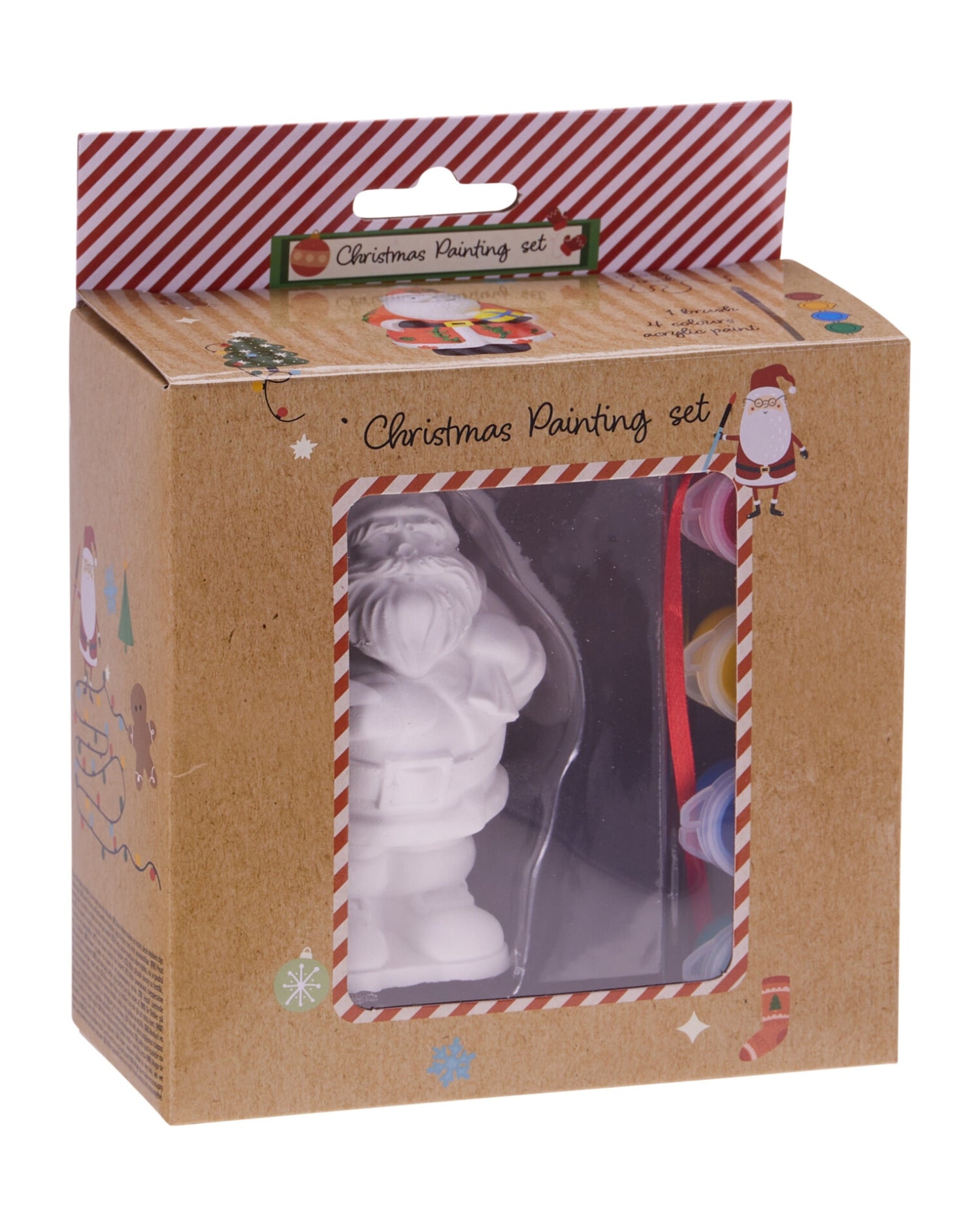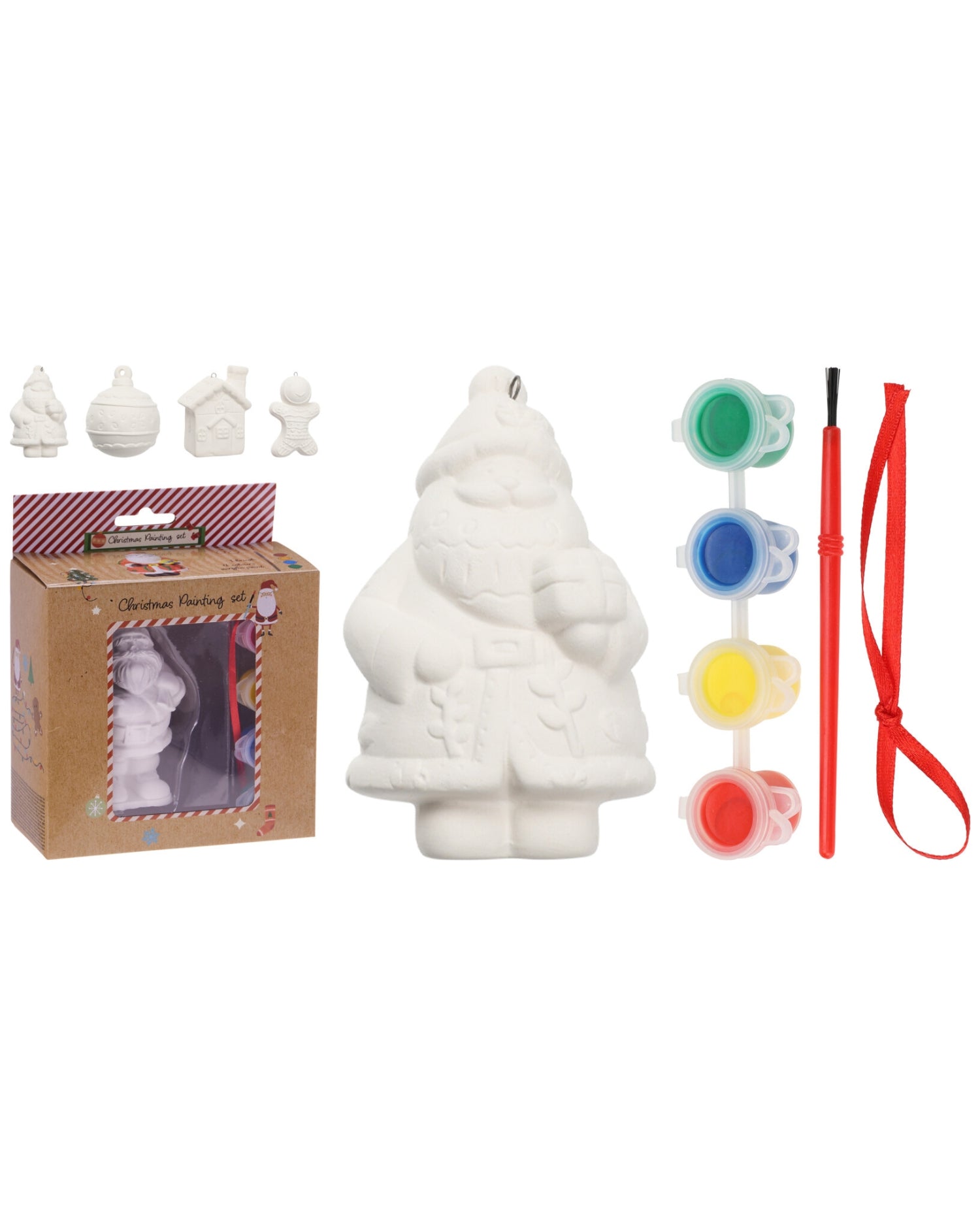Malesæt - Gipsfigur i jule design til ophæng med 4 farver / bånd / pensel - Størrelse 64x46x85 mm - Vælg mellem 4 design Julemand / Julekugle / Hus / Kagemand