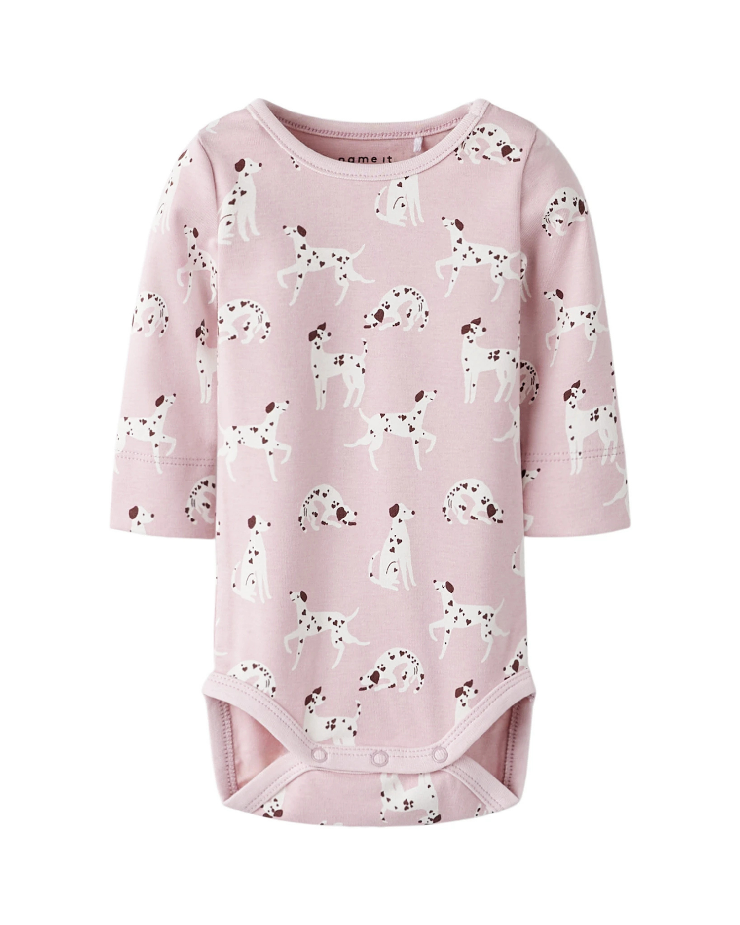 Fin lyserød body fra name it med langeærmer og hunde motiver.