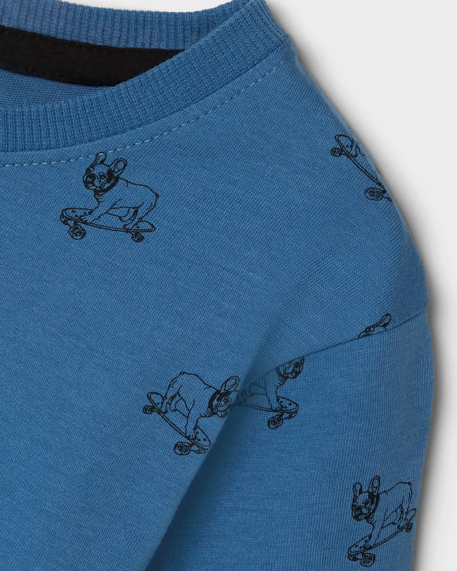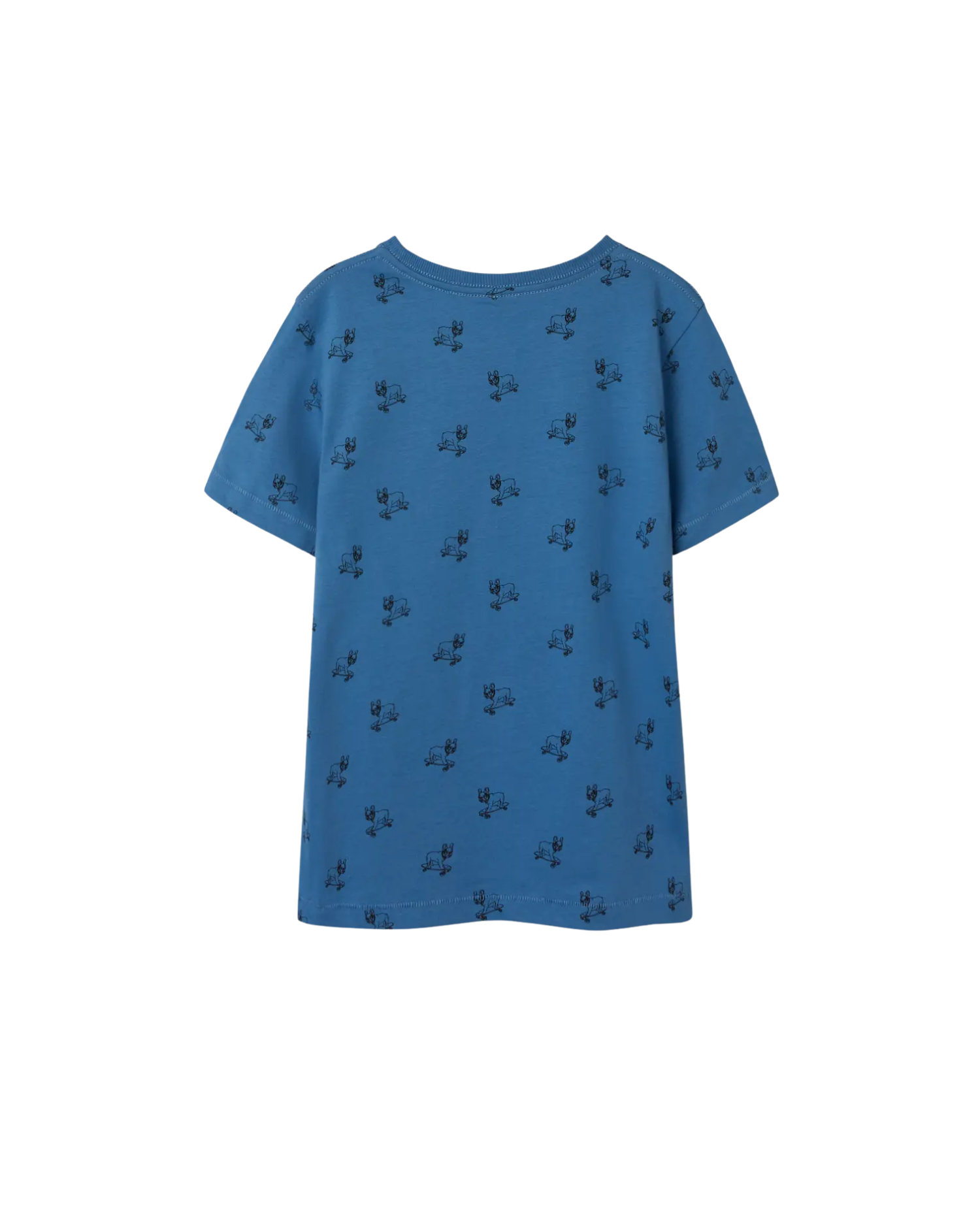 Fin kort ærmet T-shirt fra name it. Den er lavet af 100% økologisk bomuld, hvilket gør den både blød og behagelig at have på. Der er allover print af hund på skatebord.