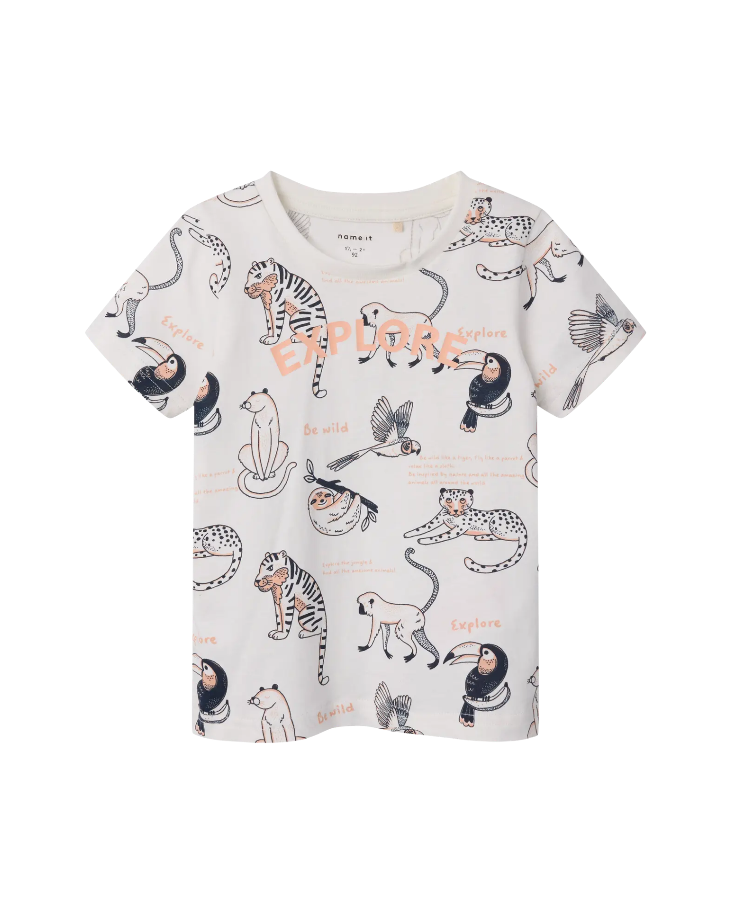 Fin hvid t-shirt med dyr og skrift fra Name it.