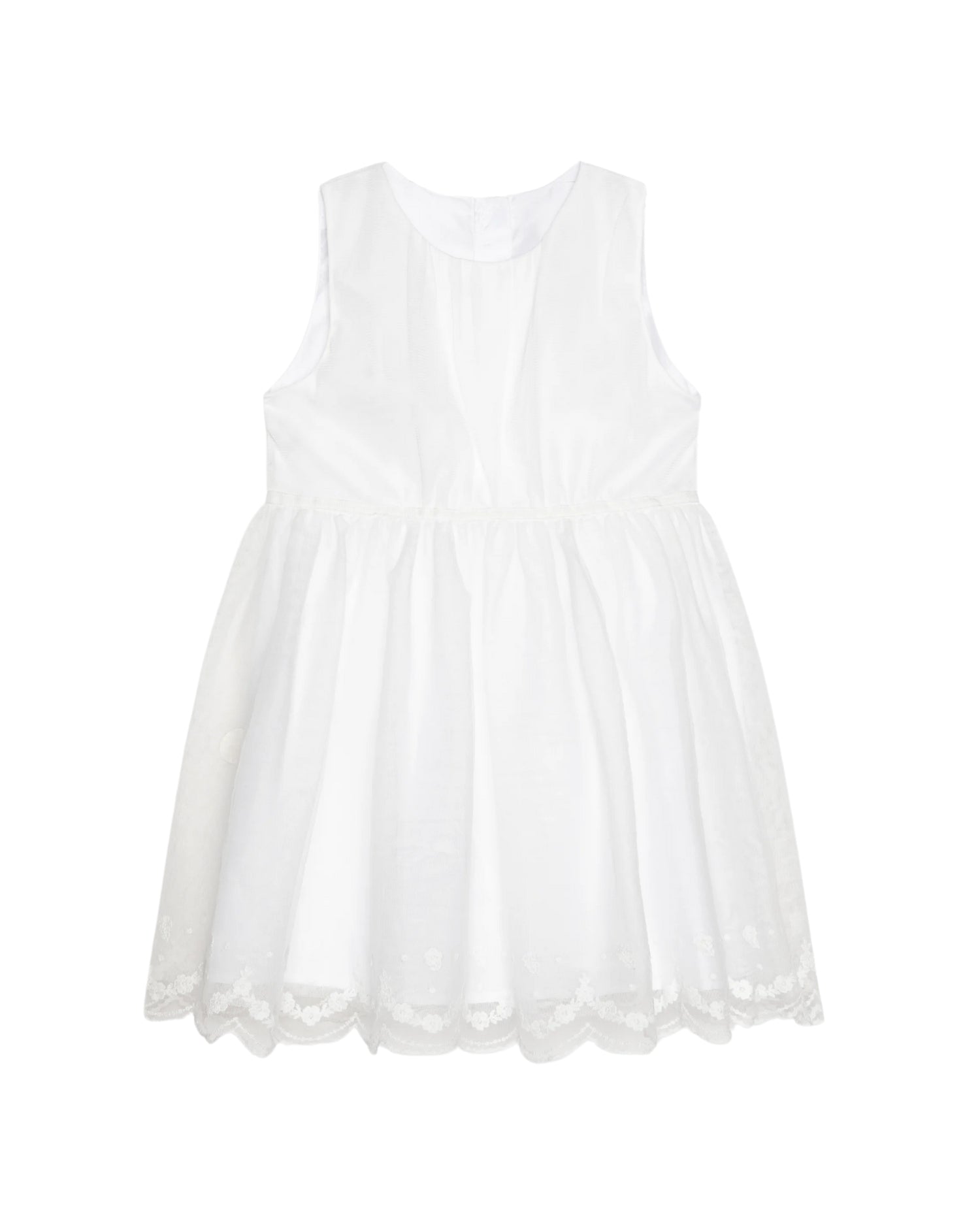 Fin hvid spencer kjole fra Name it. Kjole er i tyl med fine broderet blomster i kjole kanten.