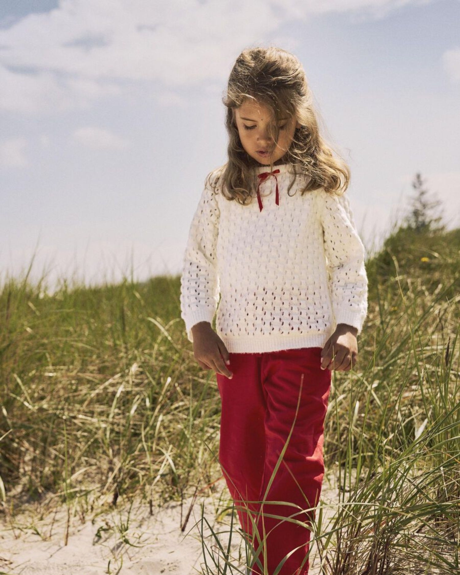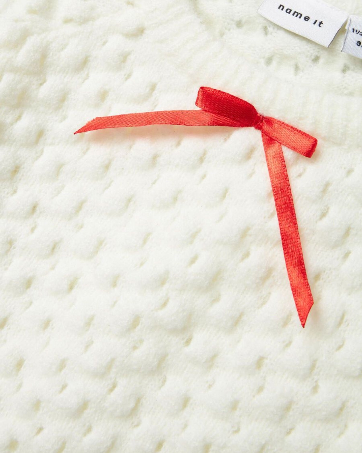 Hvid Name it strik med sød rød sløjfe.