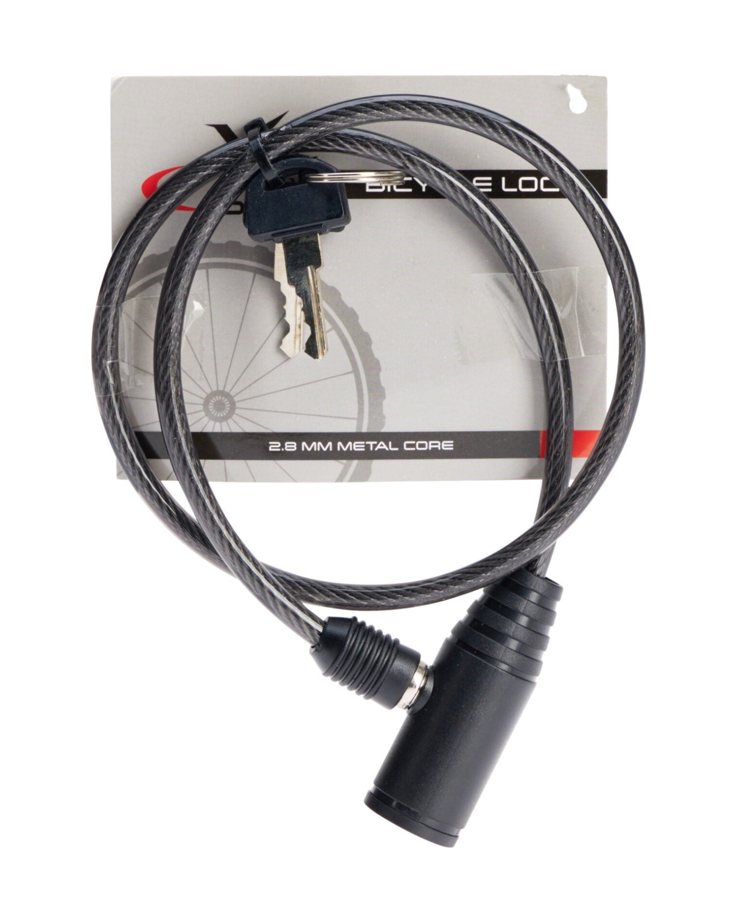 Cykellås i sort 6 mm tyk med 2,8 mm metalkerne længde 65 cm - Rundt hoved i zink med 2 nøgler