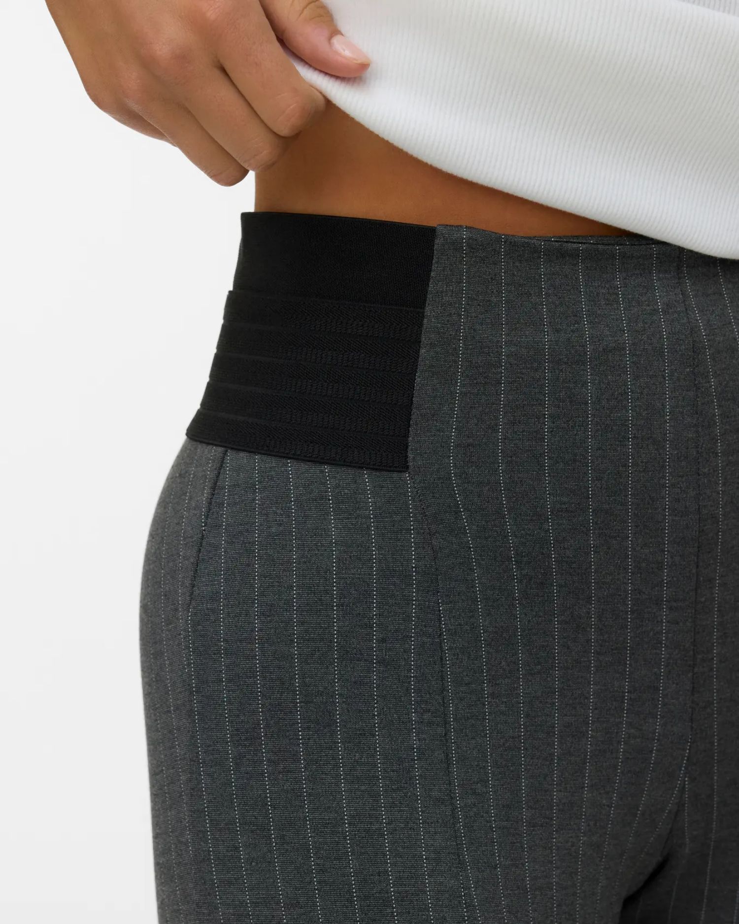 Fine grå stribede bukser fra Vero Moda med strækbar elastisk rundt om livet.