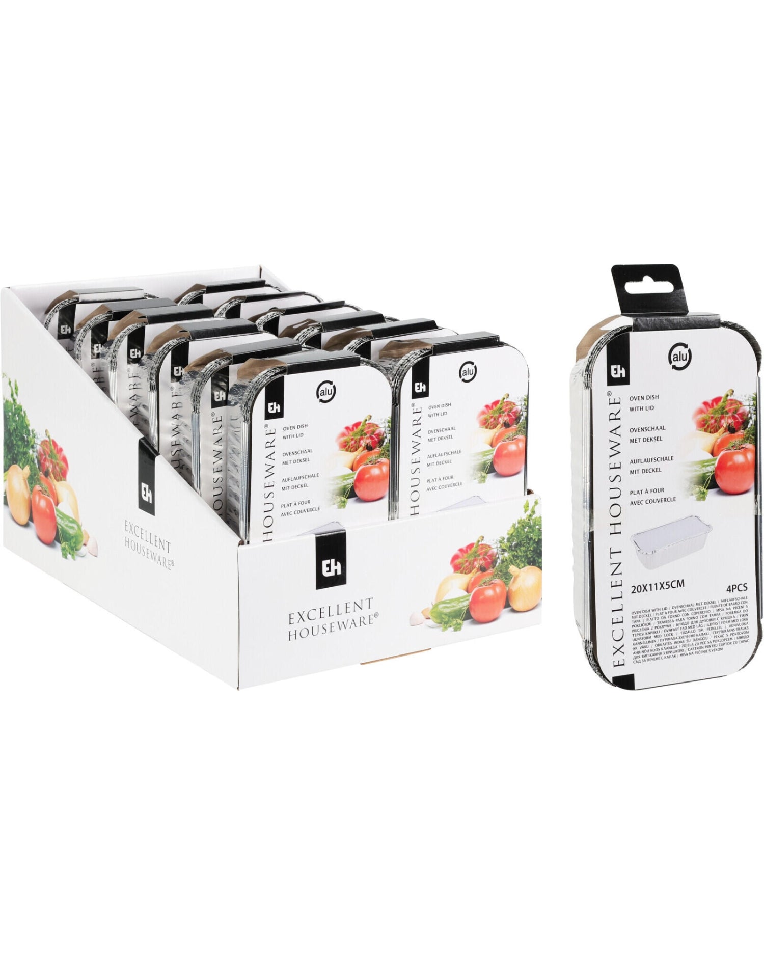 Alu bakker med låg 4 stk - 20x11x5cm