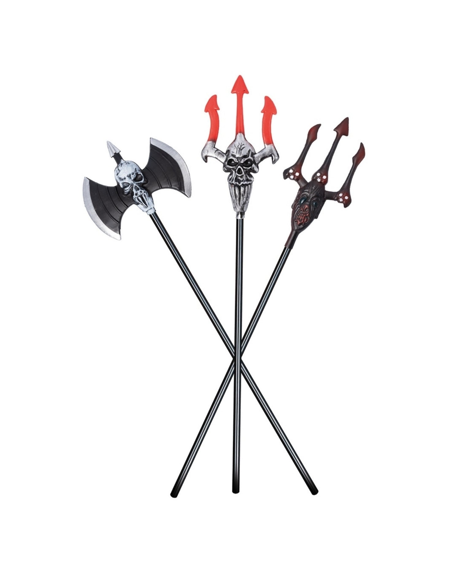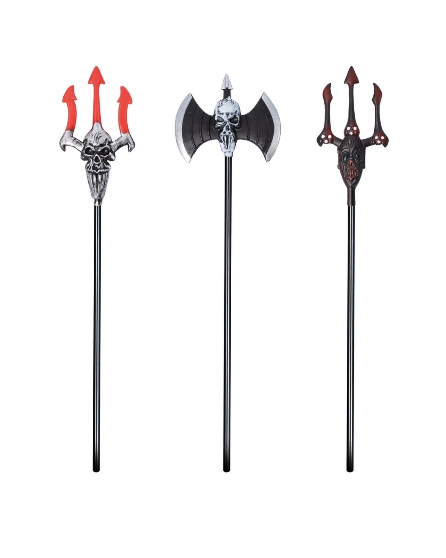 Halloween våben luksus model 120cm - Vælg mellem 3 forskellige modeller Trefork med dødninge hoved / Dobbelt økse / Trefork mørk