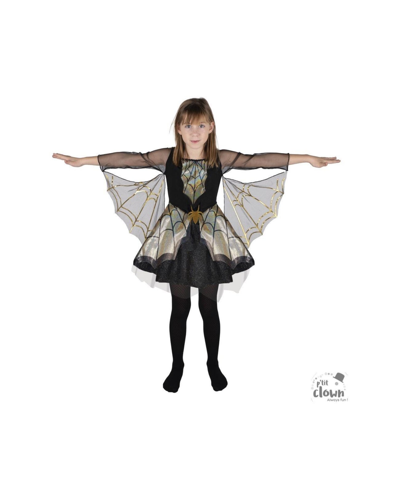 Spider costume - kids - black, gold - 5/6 years - Dress with wings