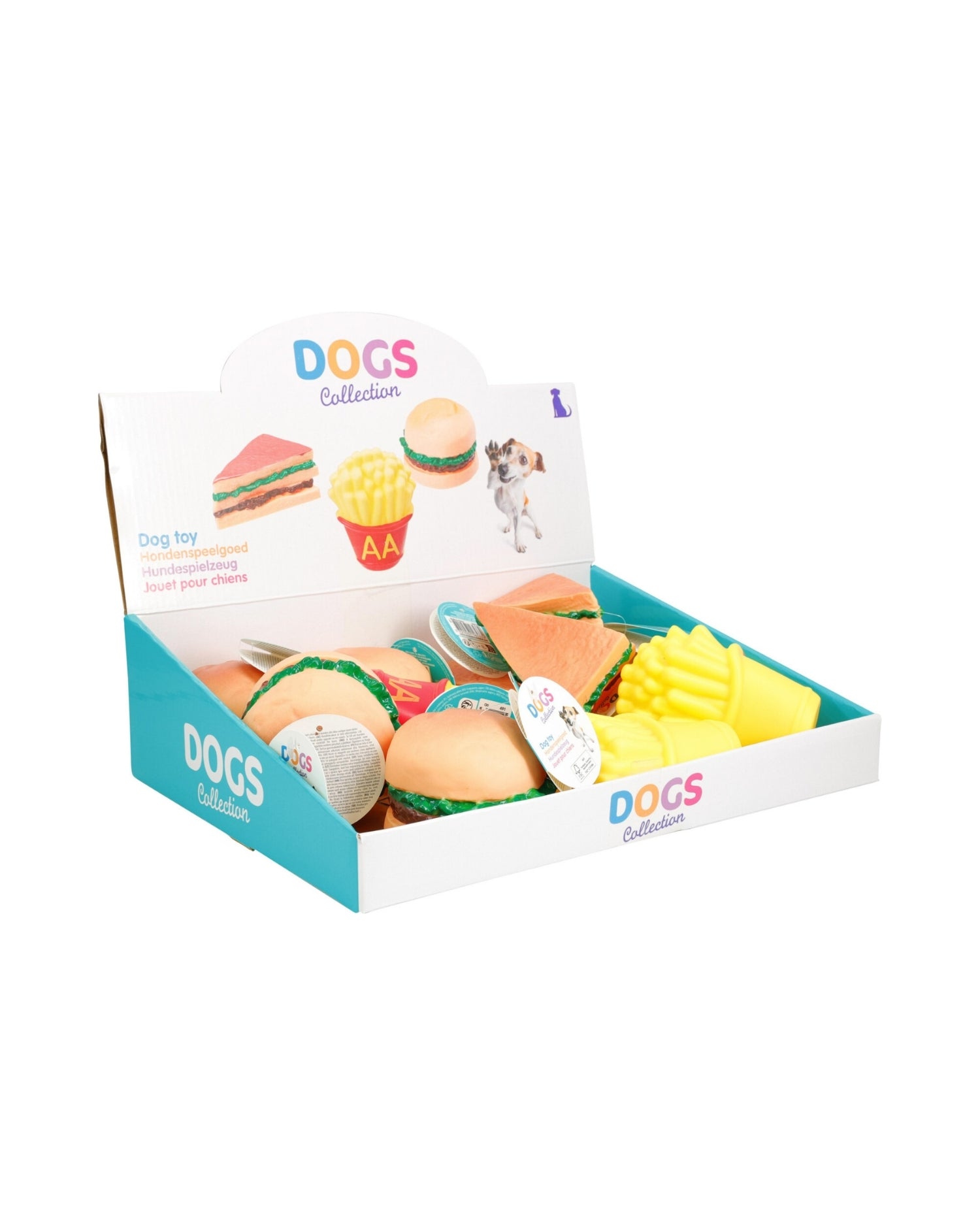Hunde legetøj Vinyl design vælg mellem 3 forskellige Burger 85x85x70mm 60 gram / Sandwich 105x70x45mm 55 gram / Pomfritter 80x120x40mm 60 gram