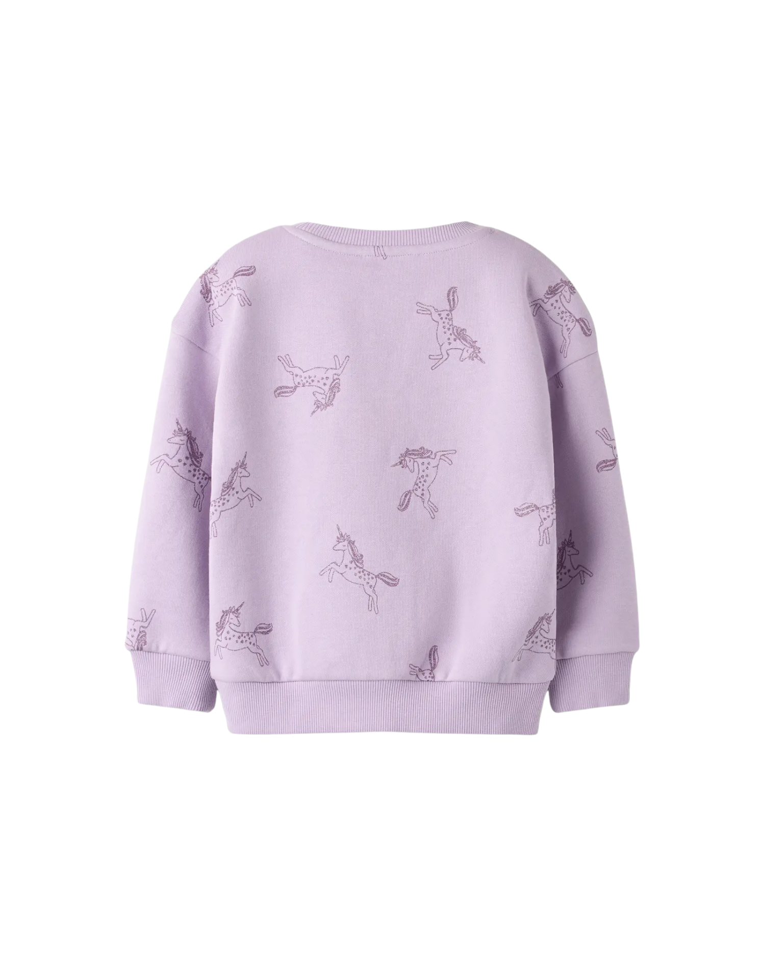 Fin sweatshirt i lilla med glimmer enhjørninger på fra name it.