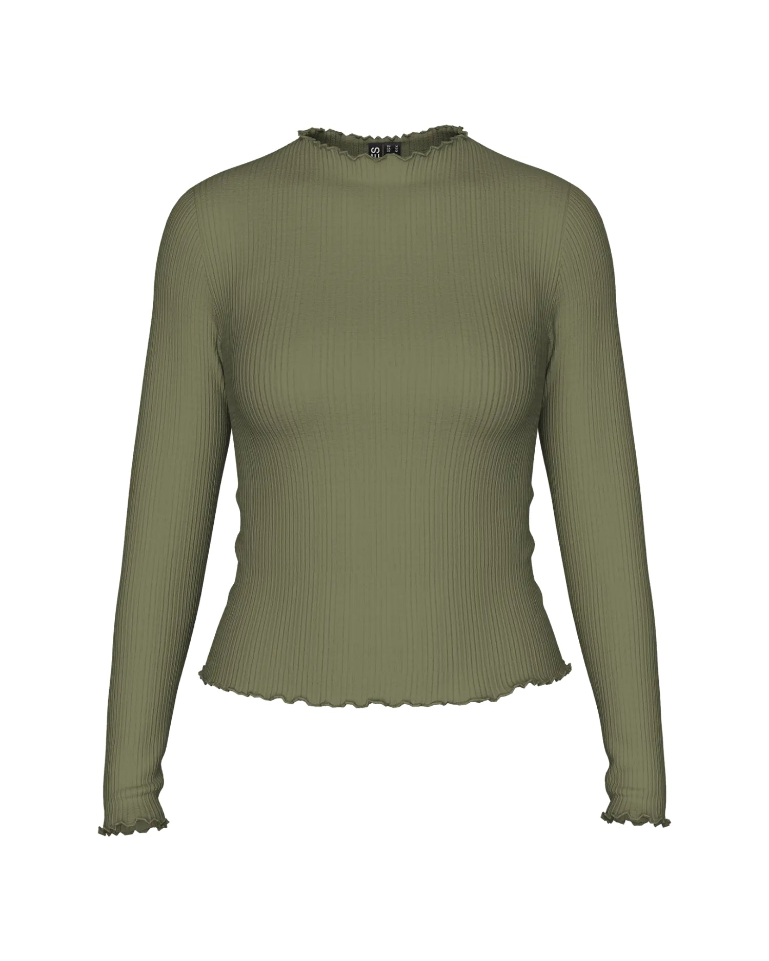 Grøn langærmet bluse med høj hals fra Pieces