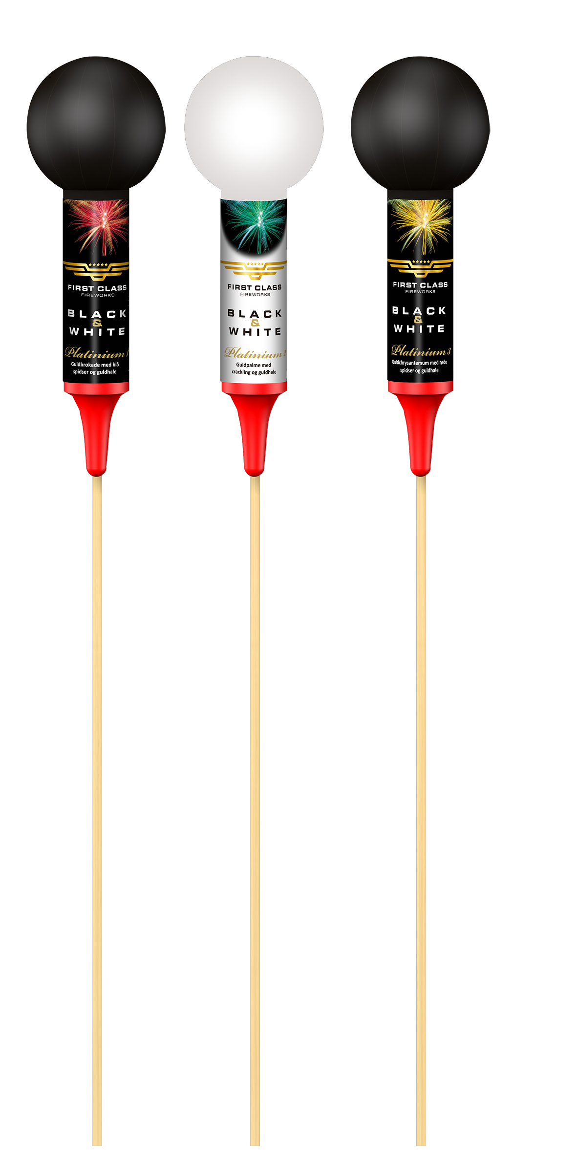 Platinium raketter fra Black & White-serien er 3 spektakulære raketter, der leverer imponerende højde og fantastiske effekter. Perfekte til nytårsaften, når kun det bedste er godt nok.