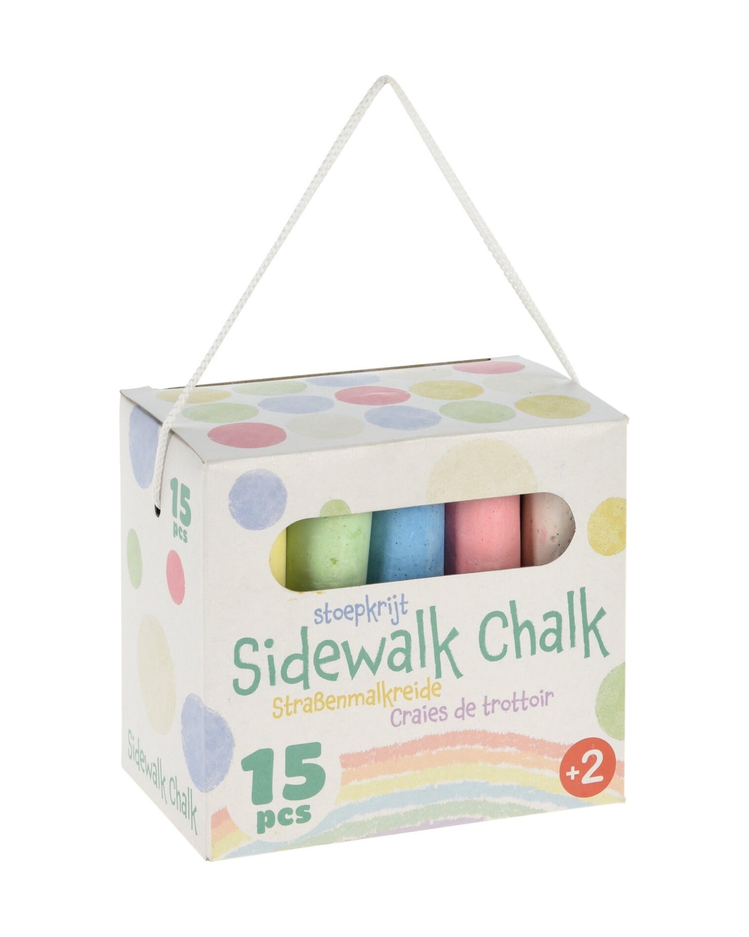 Jumbo gadekridt 15 stk i kartonkasse med håndtag i reb. Kridt 9,7x2 cm - Æske 120x75x105 mm