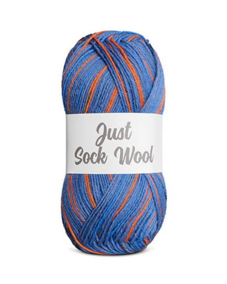 Tilbudspris 12,00 DKK Normalpris 24,00 kr -50%Stykpris /Ikke tilgængeligJust Sock Wool 50g - Fv.4 Støvet blå/Kobolt/Orange - Fra Mayflower