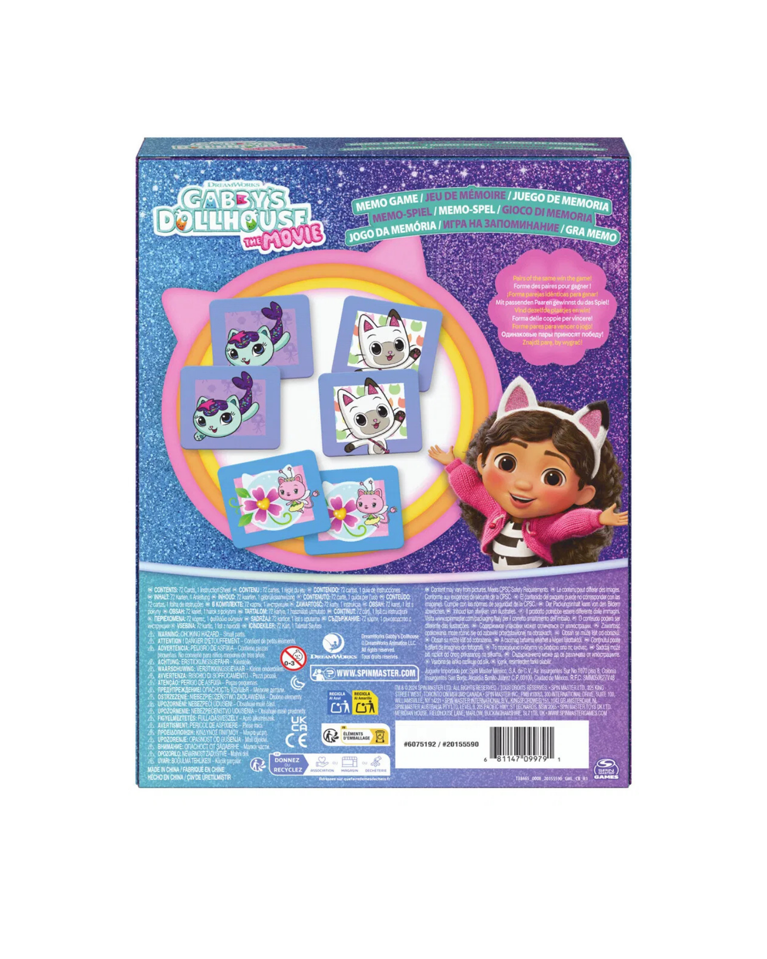 Gabby's Movie Memo Game with 72 Cards