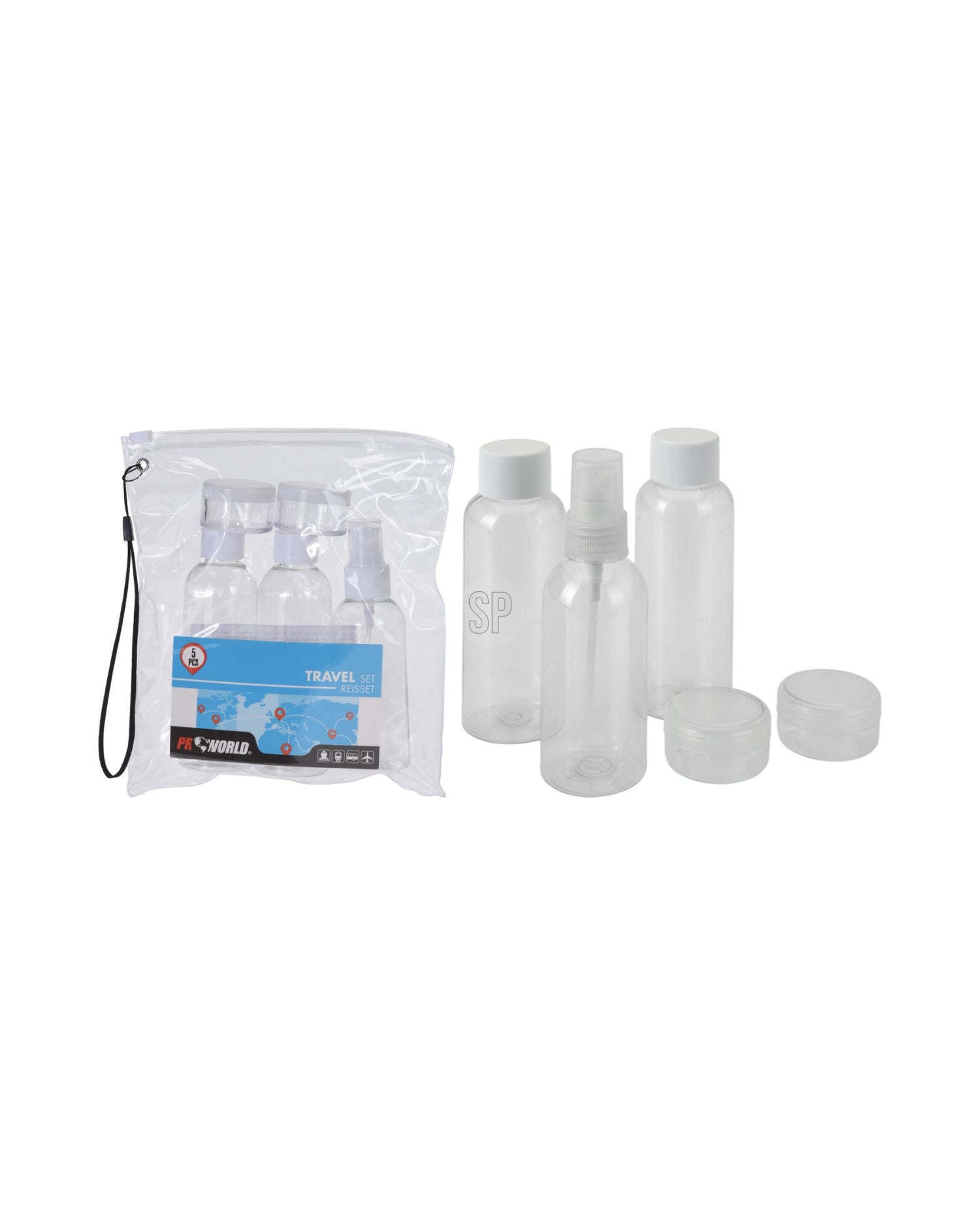 Praktisk rejseflaskesæt i let og holdbart PET med PP-låg – perfekt til shampoo, lotion, cremer og andre toiletartikler på farten.