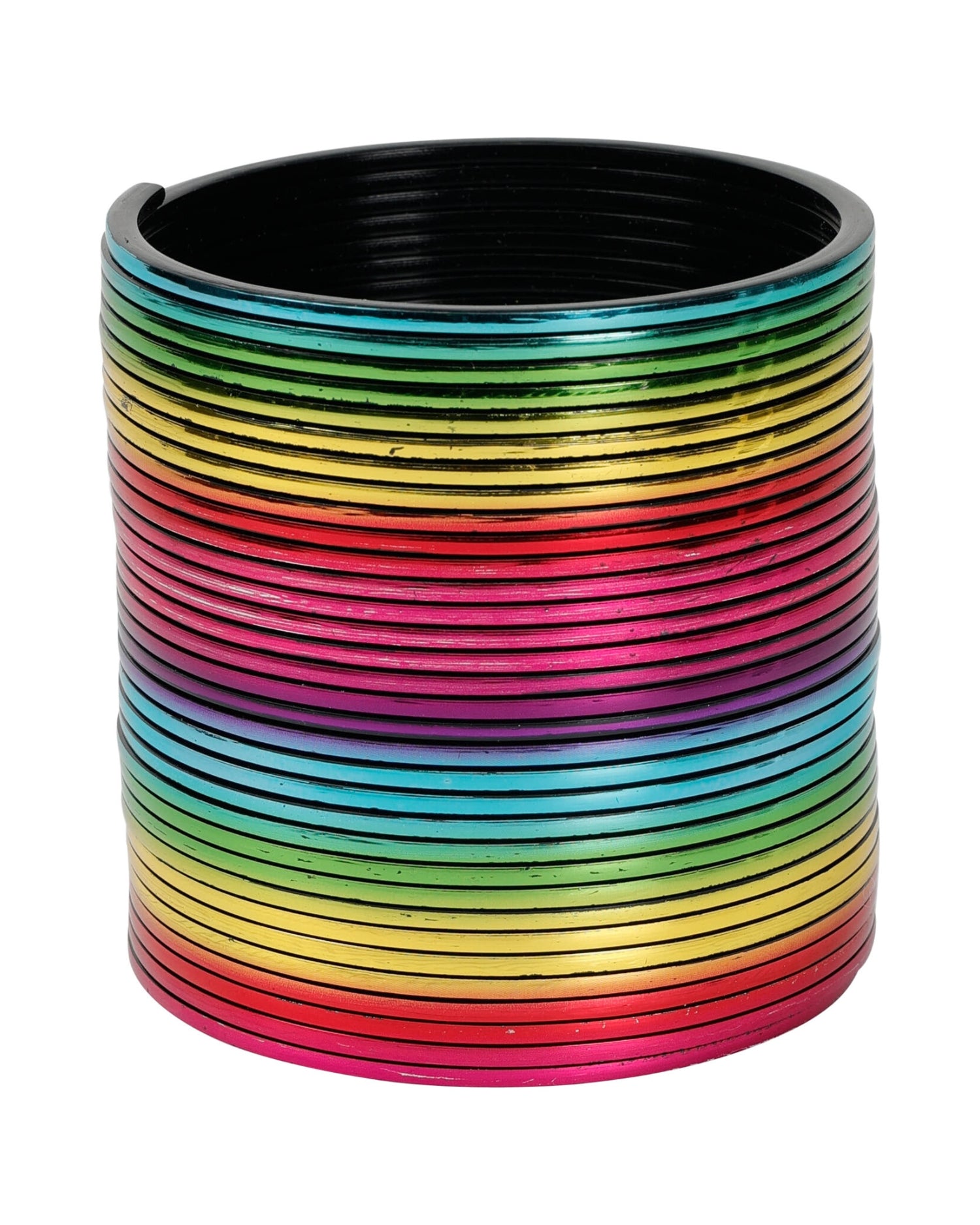 Sjov og farverig plastfjeder i regnbuefarver, der hopper og bevæger sig på underholdende vis. Perfekt som lille gave, kalendergave eller sjov legetøj til børn.